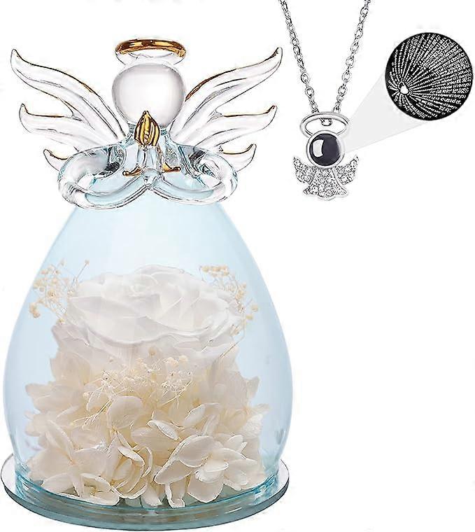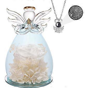 Glass Angel Gift with Necklace - Birthday Thank You Gift for Female Wife Grandma Mom, Preserved Flower Gift