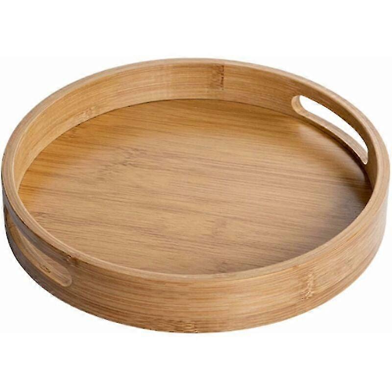 Plateau de service rond en bois avec poignes(marron),25x25x4cm, plateau dcoratif rond, en bambou naturel, plateau dcoratif pour caf, bar, restaura