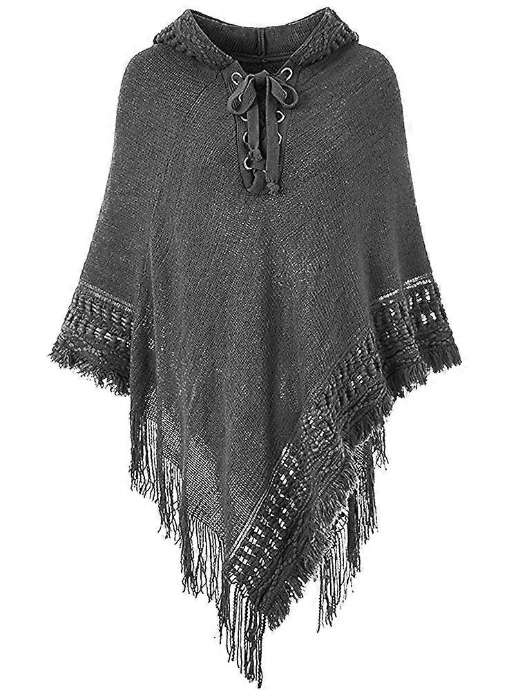 Hoodie Poncho Winter Shawl Wrap With Tassel For Lady