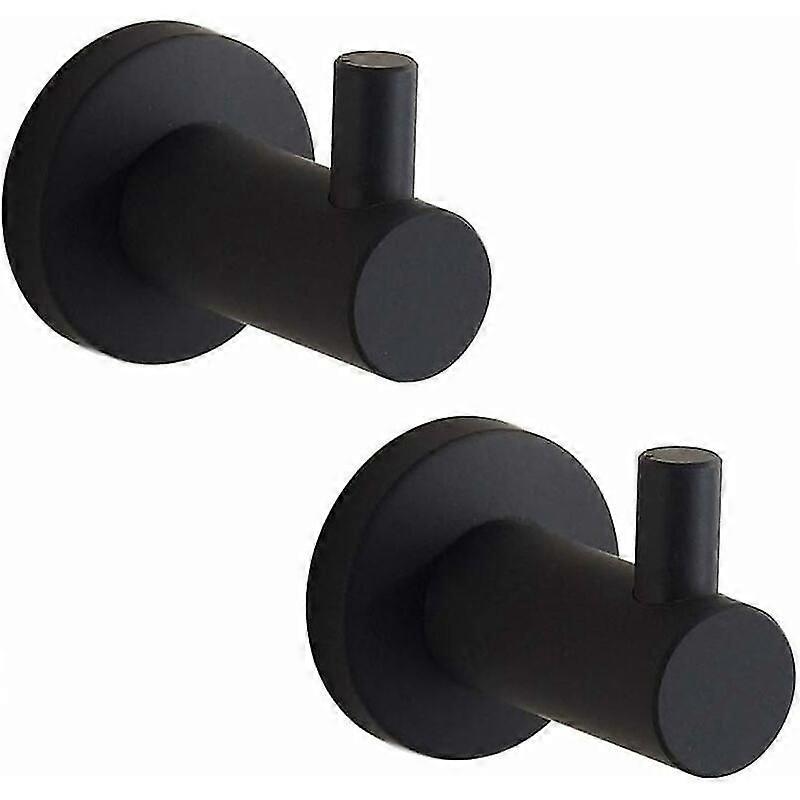 Hook 304 Stainless Steel Perforated Free Towel Rack Bathroom Robe Hook Cloakroom Coat Hook Metal, Black Set of 2