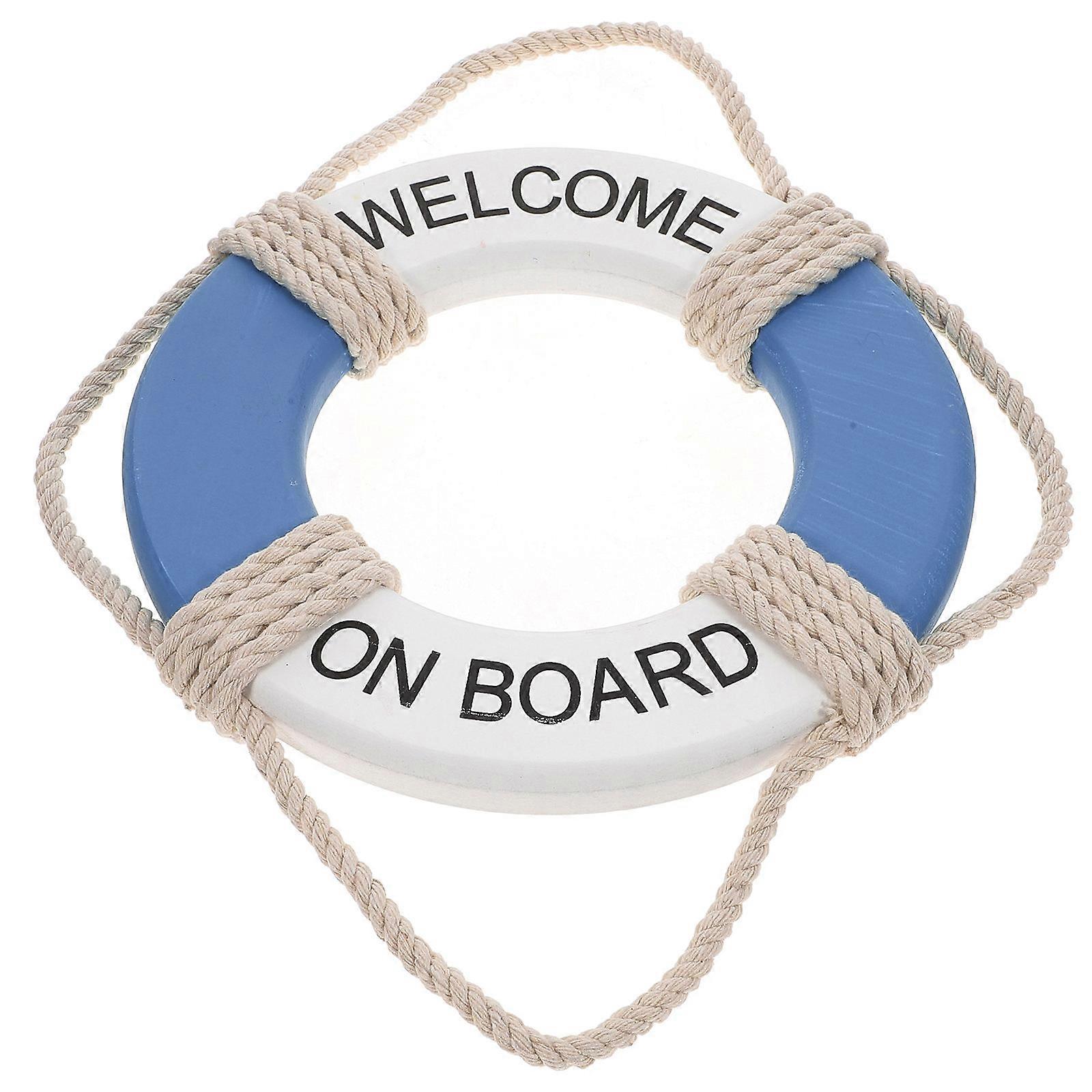 Hemoton Nautical Wall Decor Life Ring Wall Set Welcome On Board Sign Mediterranean Style Lifebuoy Wall Decor