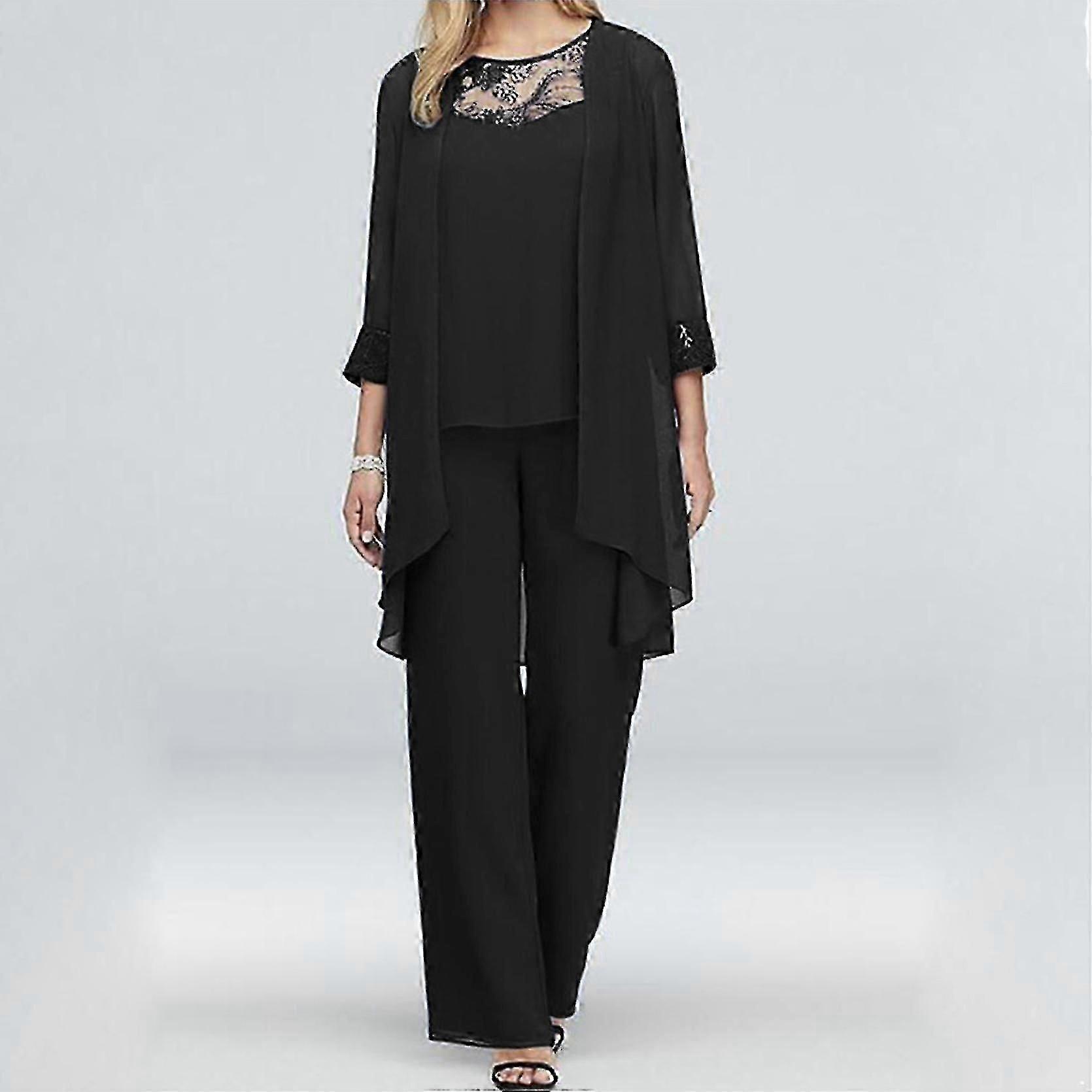 Mother of The Bride Pant Suits 3Pcs Women Wedding Formal Outfit Set Chiffon Evening Gown Plus Size