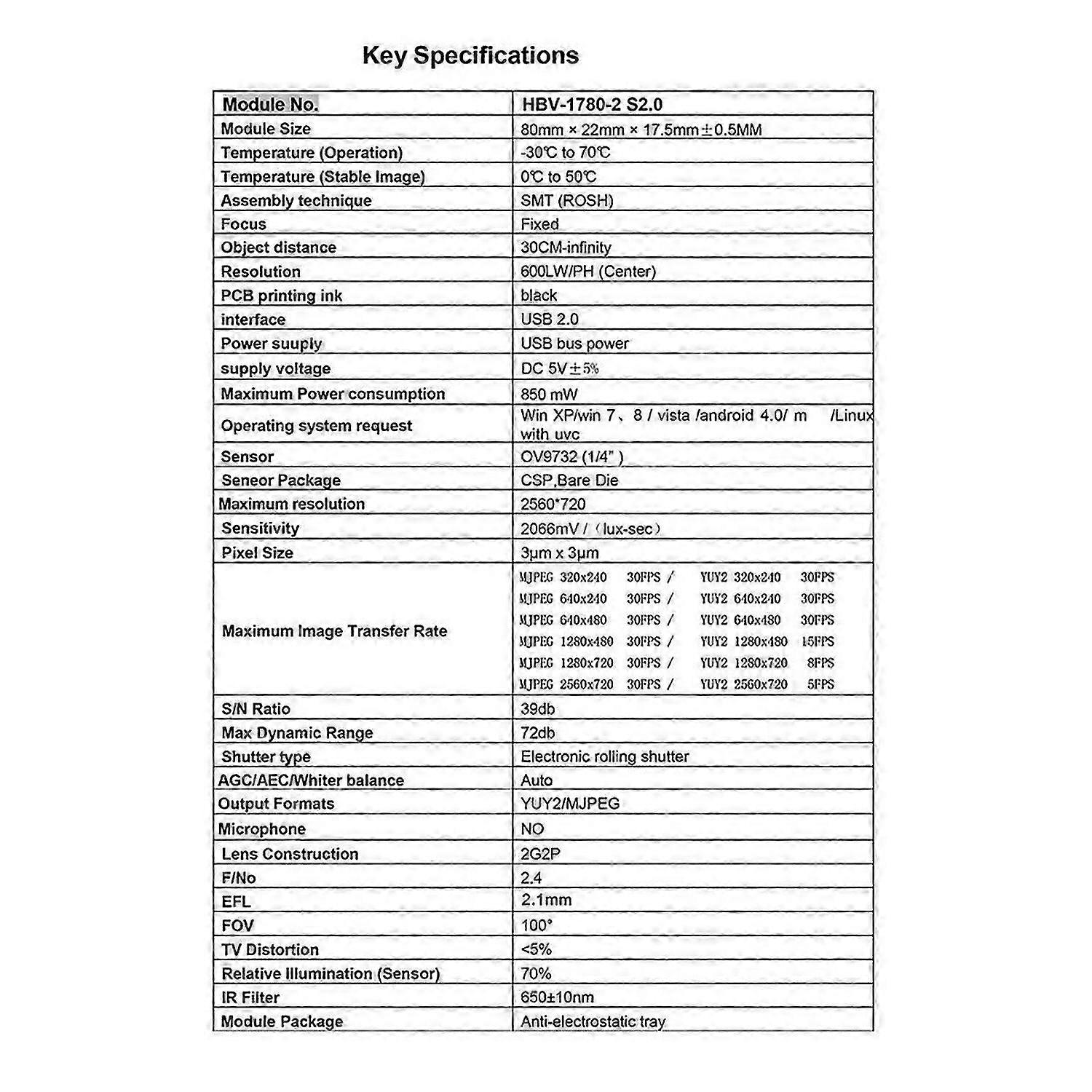 23 Degree Camera Module OV9732 1MP 12mm Dual Camera Module Manual Focus for WinXP/7/8/10 Linux/Andro