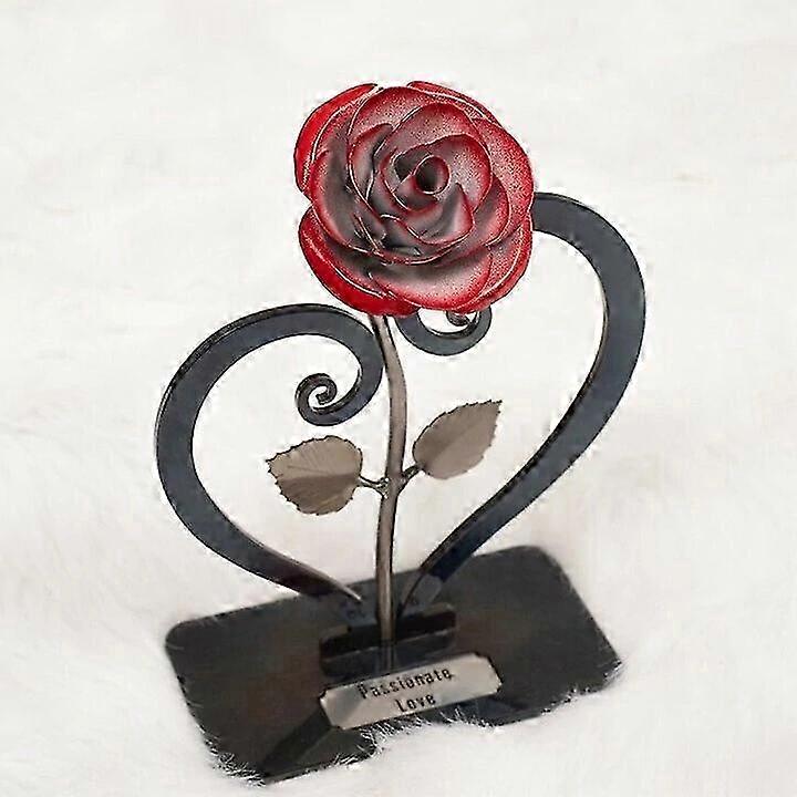 Hand-Forged Iron Rose with Heart Stand - Perfect Valentine's Day Gift Edition 0820