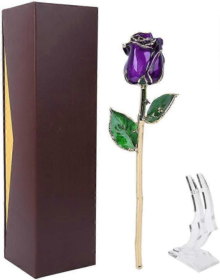 Forever Rose, 24K Gold Foil Eternal Rose with Display Stand in Box Silver Artificial Rose Flowers for Mom, Lover, Women Thanksgiving Day, Valentines,