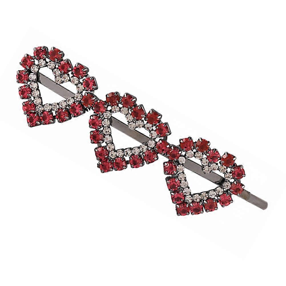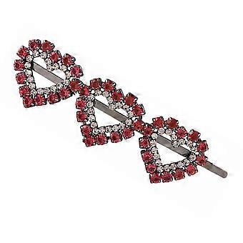 Pink Heart Shaped Rhinestone Hair Clip for Decoration with Smooth Alloy Pin 1 Pc