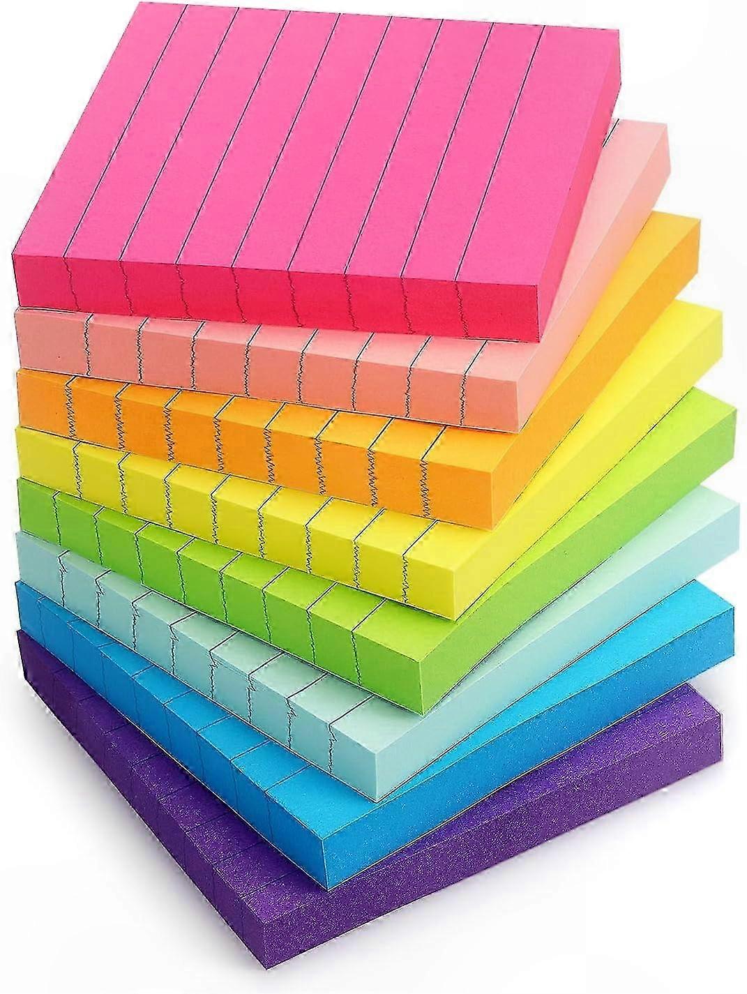 4x4 Lined Sticky Note Pads, 8-Pack, 50 Sheets per Pad, Multi-Color Self-Stick Notes for Organization and Notes