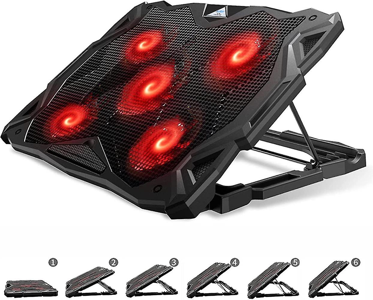 Laptop Cooling Pad, Laptop Cooler With 5 Quiet Red Led Fans For 12-17.3 Inch Laptop, Dual Usb 2.0 Po