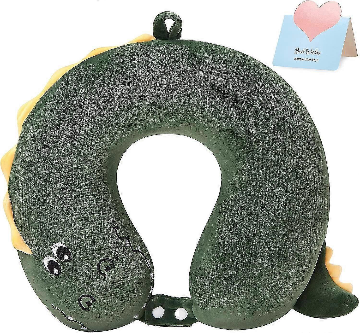 Dinosaur Travel Pillow for Long Trip 100% Pure Memory Foam Adjustable Neck Pillow with Buckle (Green )