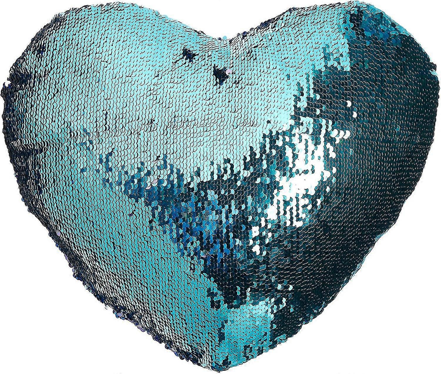 Heart Shape Pillow Mermaid Sequin Pillow With Pillow Inserts Reversible Throw Pillow (35 X 40 Cm, Aquamarine Green)