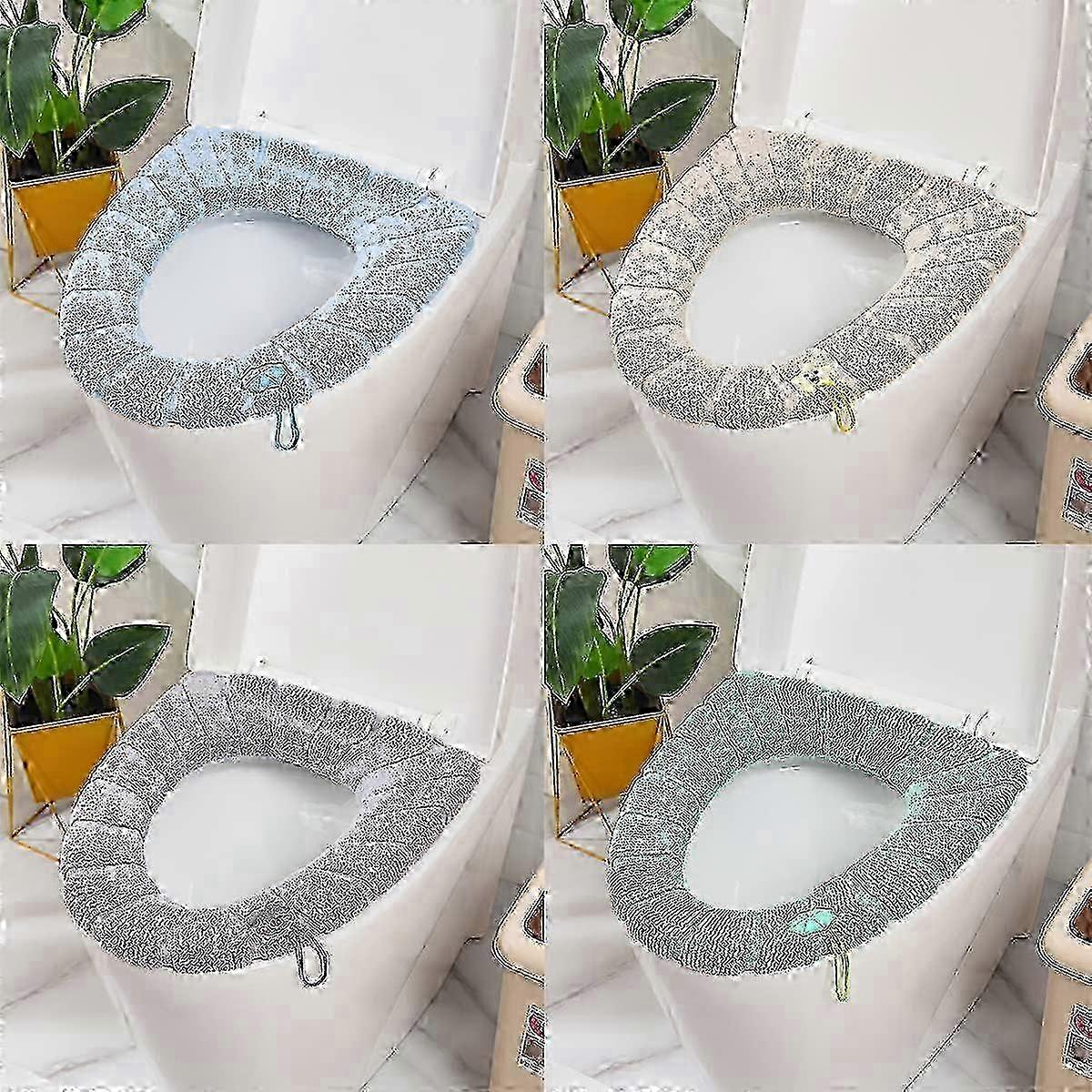 Soft Bathroom Warmer Handle Toilet Seat Cover Pad, Thicker Stretchable Washable Fits All Oval Toilet Seats (4Pcs)