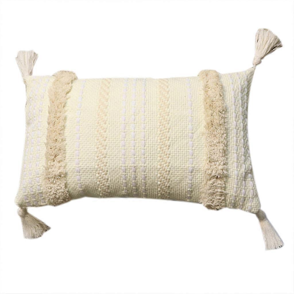 Moroccan Lumbar Pillow for Case Tassel Boho Tufted Embroidery Striped Cushion Co