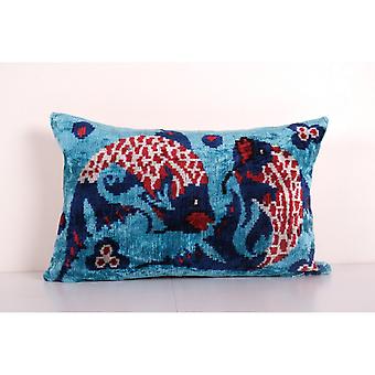 Fish Ikat Velvet Pillow, Handloom Silk Animal Lumbar Cushion Cover, Velvet Lumbar