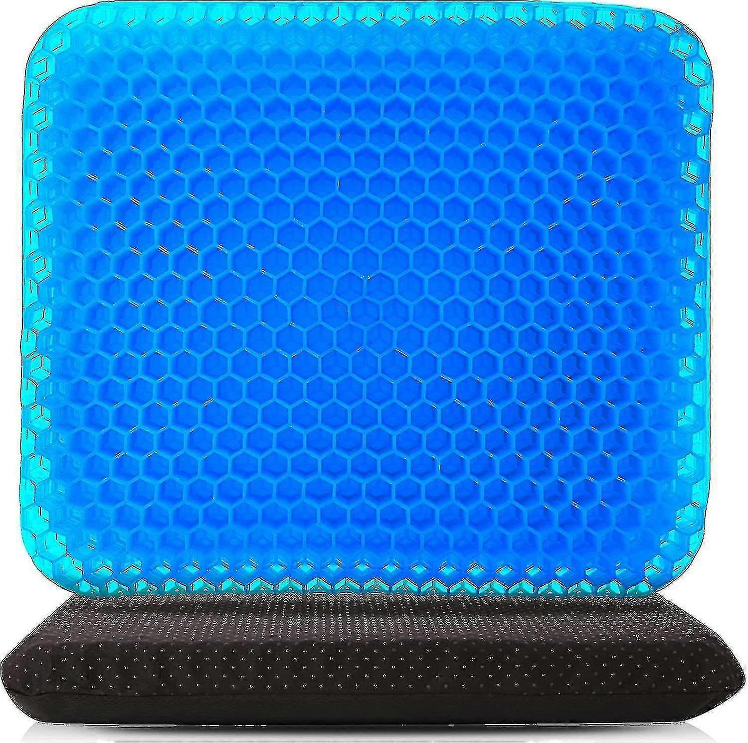 Size: M: 23*28cm L:35*30cm XL:44*44cm Introducing our Extra-Large Thick Gel Seat Cushion, the ultimate solution for transforming hard seats into comfortable sitting surfaces. Thicker than most cushions, ours offers superior comfort, alleviating pressure, and making any seat more enjoyable. Our cushion features a unique double-layer honeycomb design with numerous vents for excellent airflow. This ensures superior breathability, reducing the likelihood of sweating, and keeping you dry and comfortable throughout the day. No more uncomfortable, stuffy seats. Ergonomically designed, our gel cushion evenly distributes your weight, creating pressure-free points. This promotes better blood circulation in the lower limbs, effectively relieves sciatica, and provides comfort for those sitting for extended periods. Crafted from high-quality, high-elastic gel material, our cushion excels in heat dissipation, offering a cool and comfortable sitting experience, especially during hot summer days. It also comes with a black non-slip cover, ensuring the cushion stays in place. Our versatile gel cushion is perfect for various settings, including offices, classrooms, homes, cars, wheelchairs, and any other hard seats.