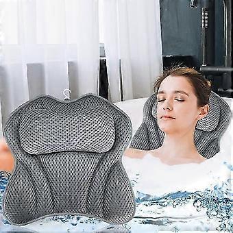Bath Pillows, 4D Bathtub Pillow with 6 Non-Slip and Powerful Suction Cups for Spa Pillow, Jacuzzi, Hot Tub, (Grey)