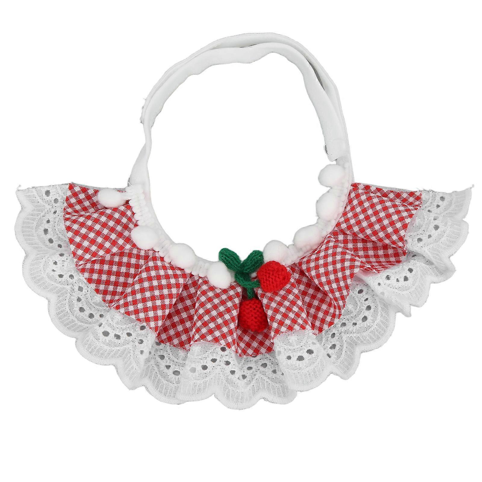 Cat Lace Scarf Breathable Soft and Comfortable Cute Lace Princess Pet Saliva Towel for Small Medium Cats DogsRed Grid L