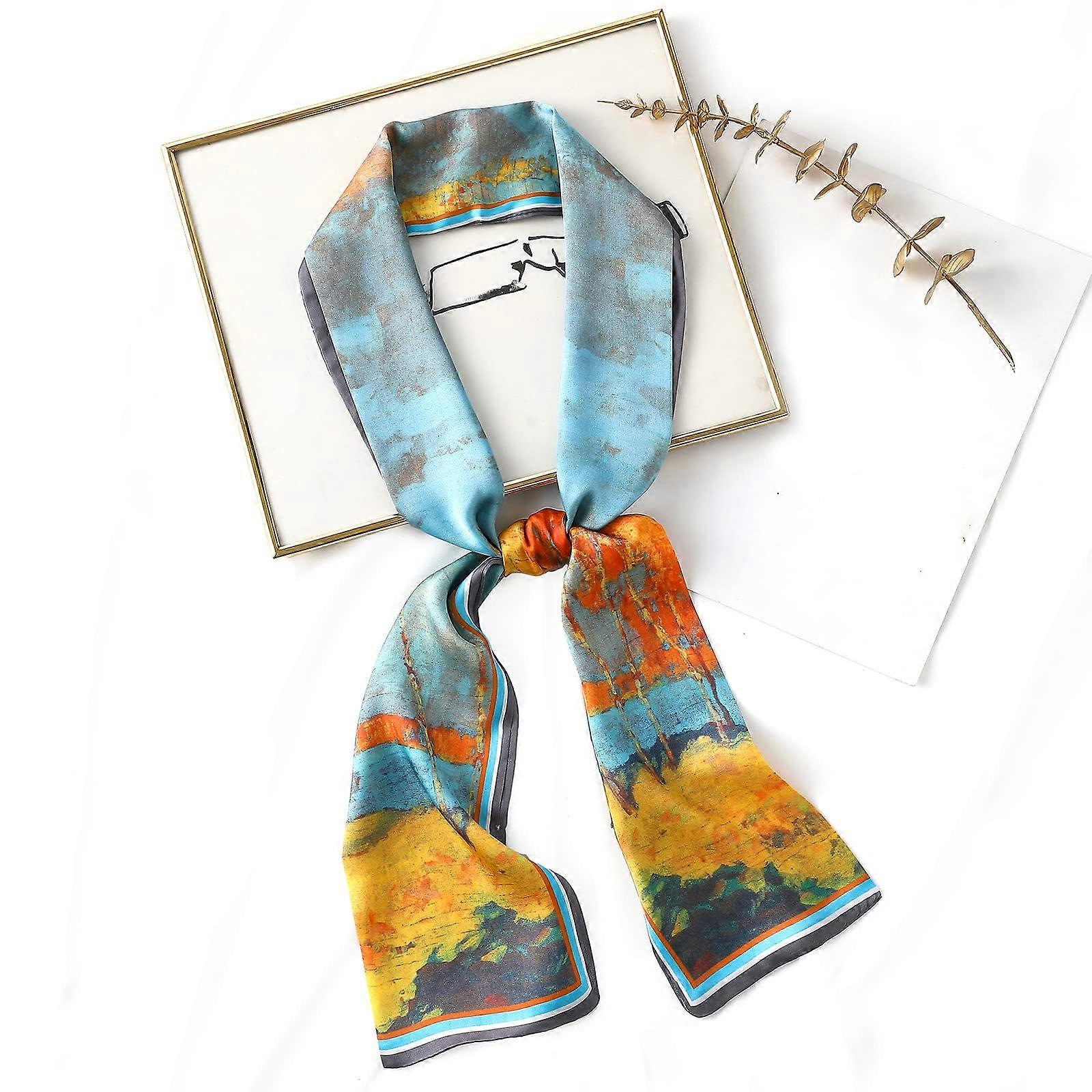 100% Mulberry Silk Scarf for Women, Bandana Ladies Neck Scarf, Silk Satin Head Scarf for Spring, Summer Printed Scarves, Gifts for Girls-150 * 15cm