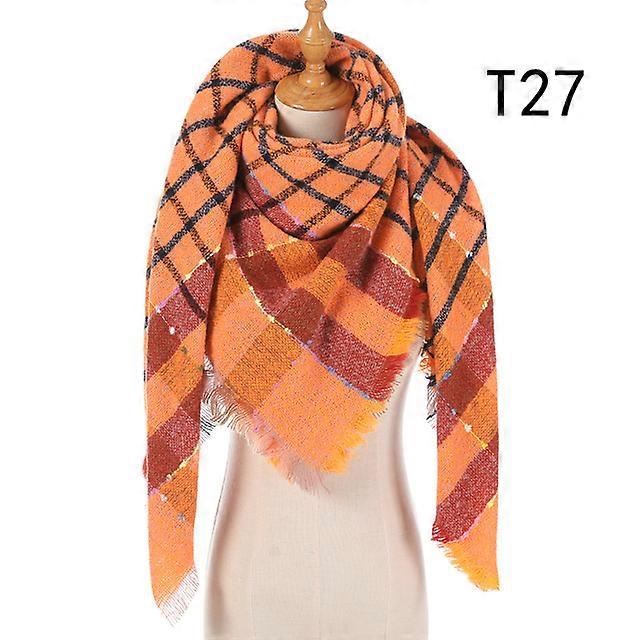 2022 Fashion Winter Scarf for Women Plaid Knitted Triangle Scarves Cashmere Pashmina Lady Warm Blanket Shawls Wraps Neck Scarfs