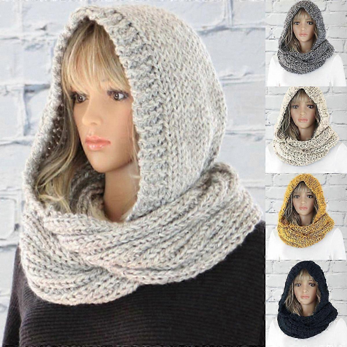 Women's Stylish Knit Hooded Scarf for Autumn and Winter - Warm Retro Design Hat and Scarf Combo