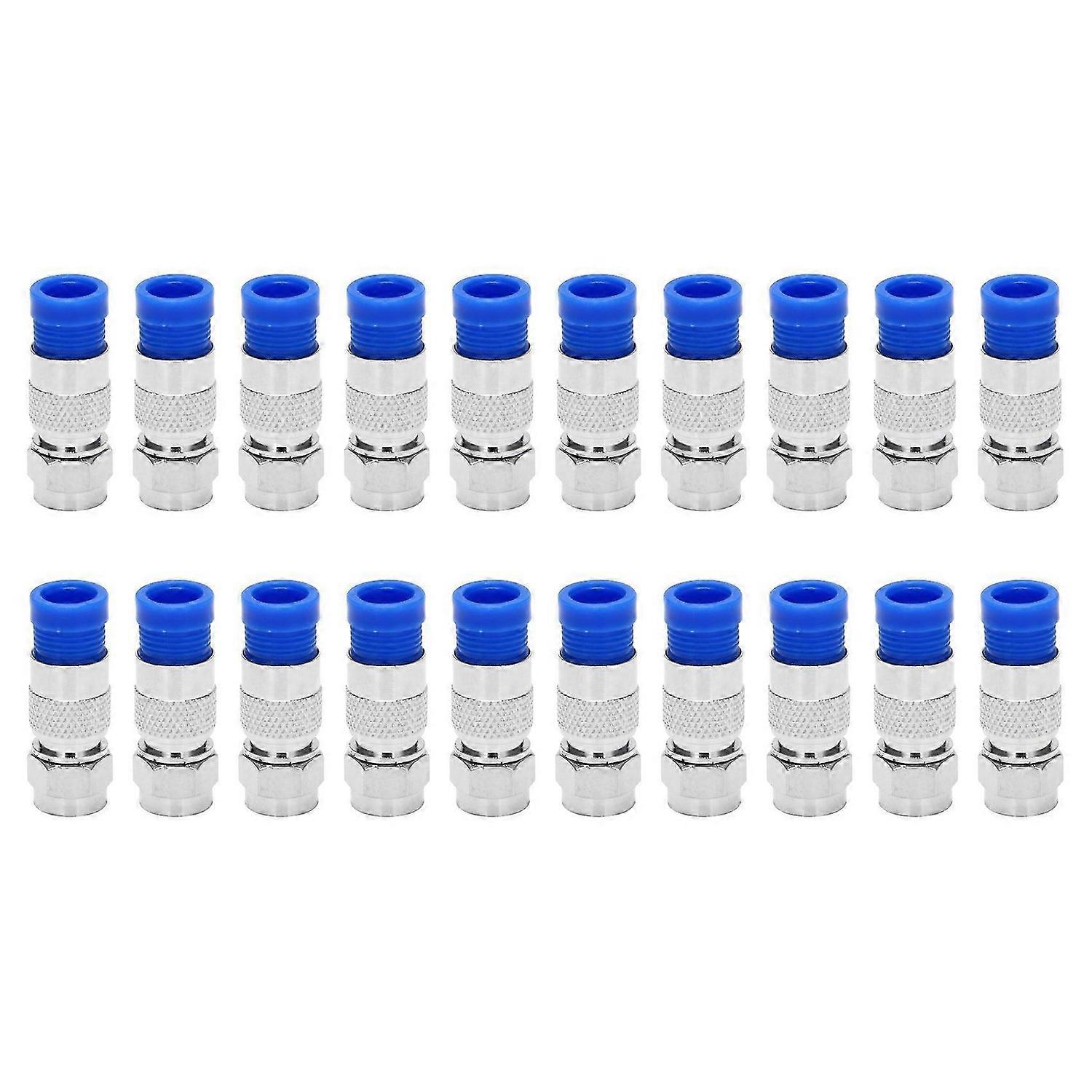 Rg6 F Type Connector Coax Coaxial Compression Fitting 20 Pack (Blue)