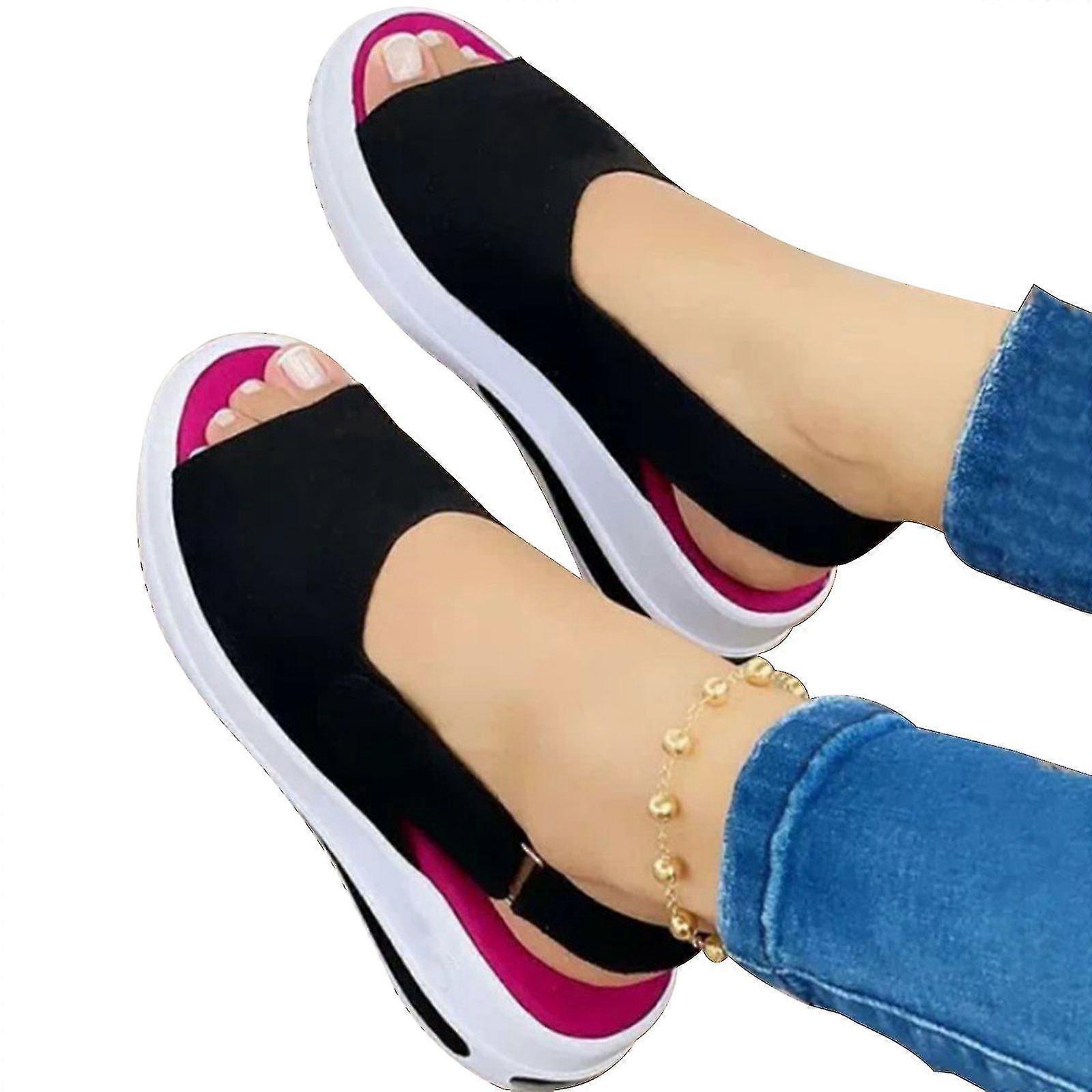 New Arrive Womens Comfy Sports Knit Sandals Flat Heel Sandals Ladies Casual Large Size Shallow Mouth Fashion Outdoor Wedge Sandals