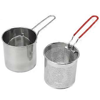 Deep Fryer Pot 304 Stainless Steel Frying Pan Stock Fry Pot with Strainer Basket and Handle for Frying Shrimp