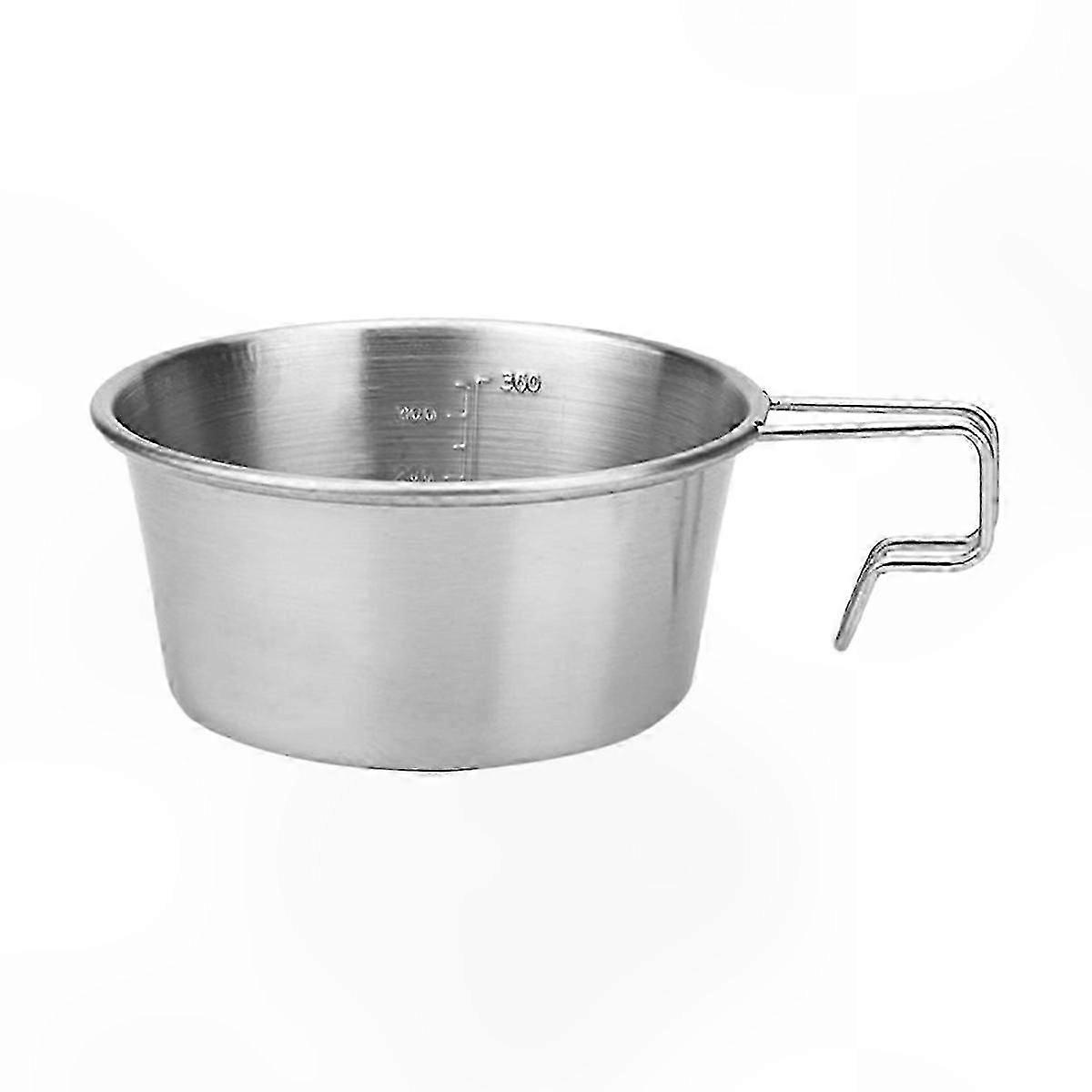 Non-Stick Portable Camping Bowl with Handle, 360ml Silver Outdoor Picnic Cup hwy