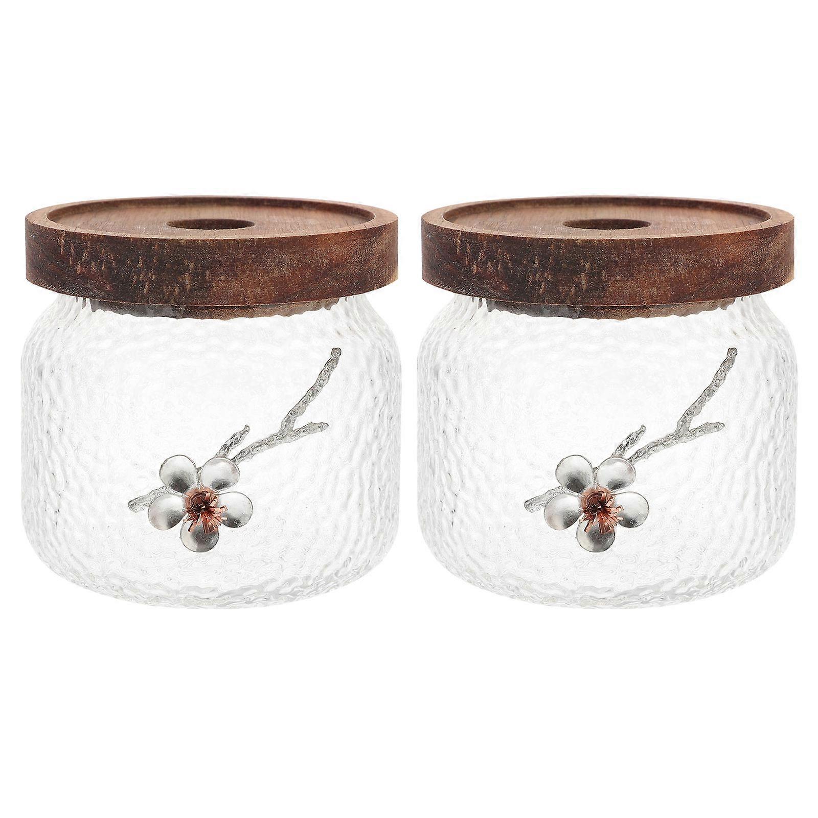 Glass Containers Seal Pot for Kitchen Food Storage Material Glass Wood Tin for Food Preservation 2Set