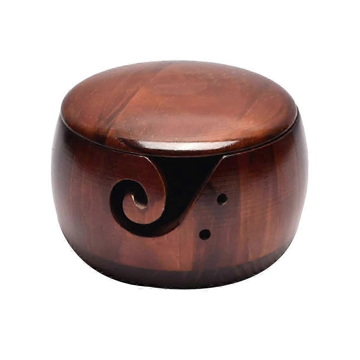 Handmade Wooden Yarn Bowl with Lid for Knitting Crochet Yarn Storage, Yarn Ball Holder Organizer