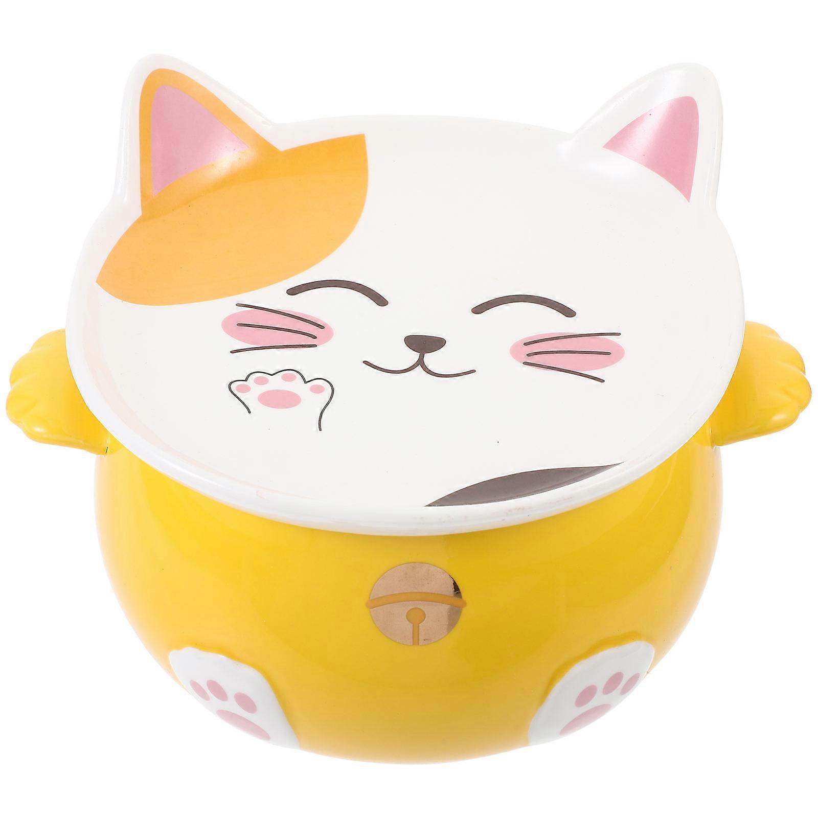 Ramen Noodles Bowl Adorable Design Cat-Shaped Ceramic Storage 15X14.5X8.5CM 1Set
