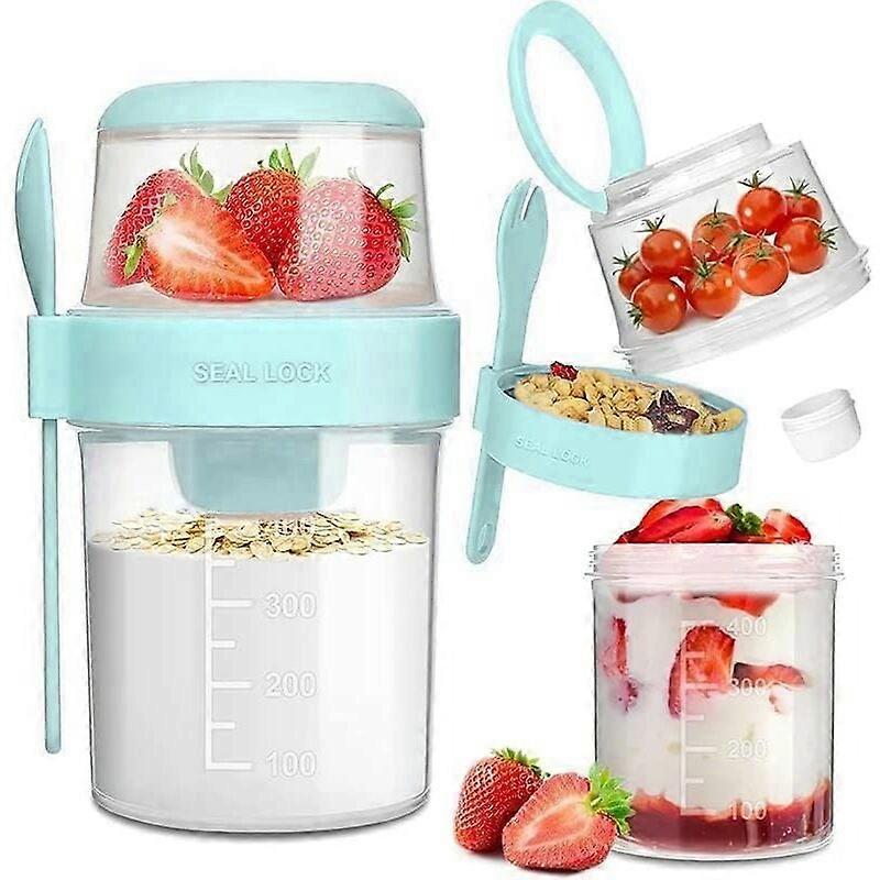 Yogurt Pot - 310ml + 560ml - 2 in 1 Cereal Cup, Fork- Cyan