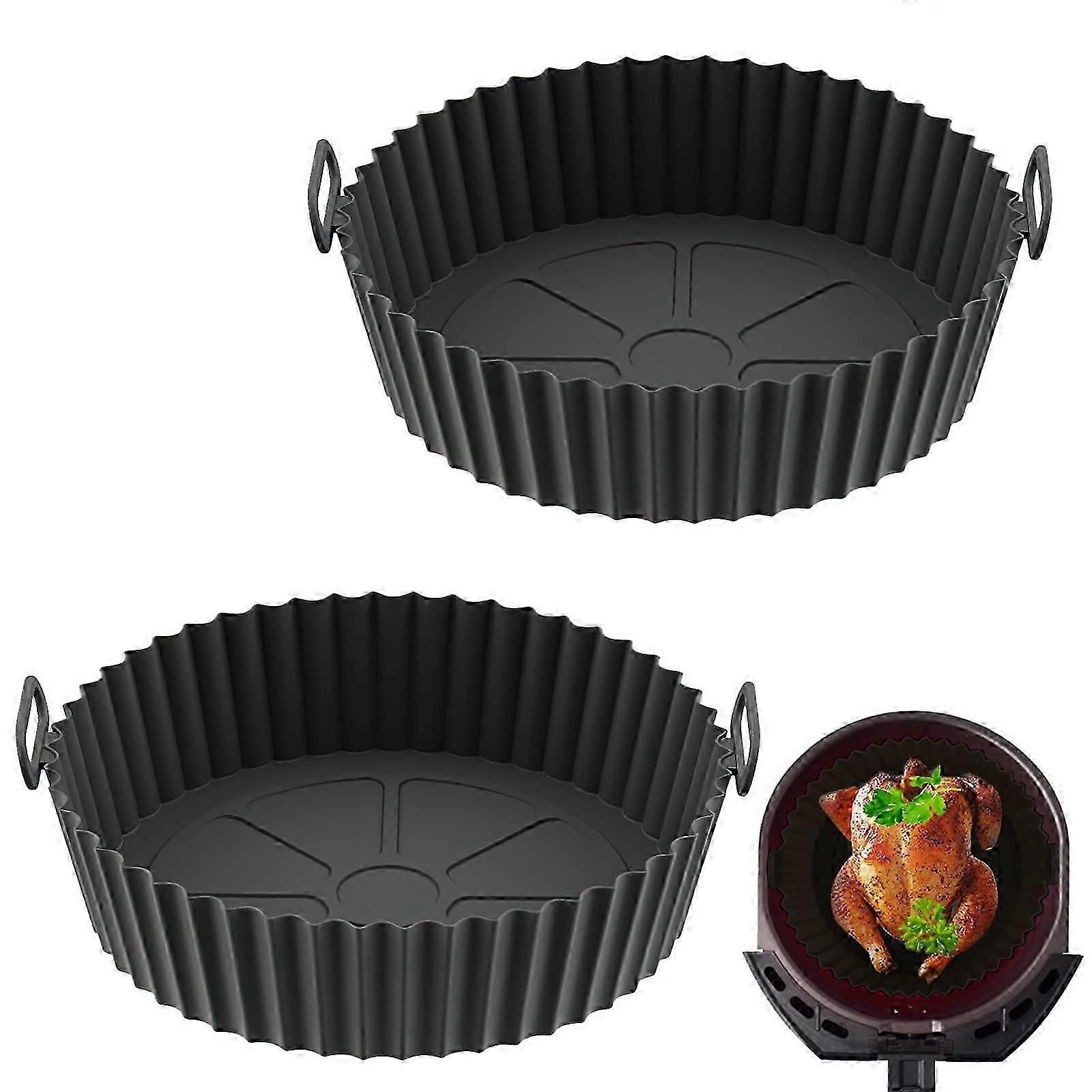 Air Fryer Silicone Pot, 2 Pack Reusable Airfryer Liners, Air Fryer Accessories, Kitchen Accessories Replacement, Black