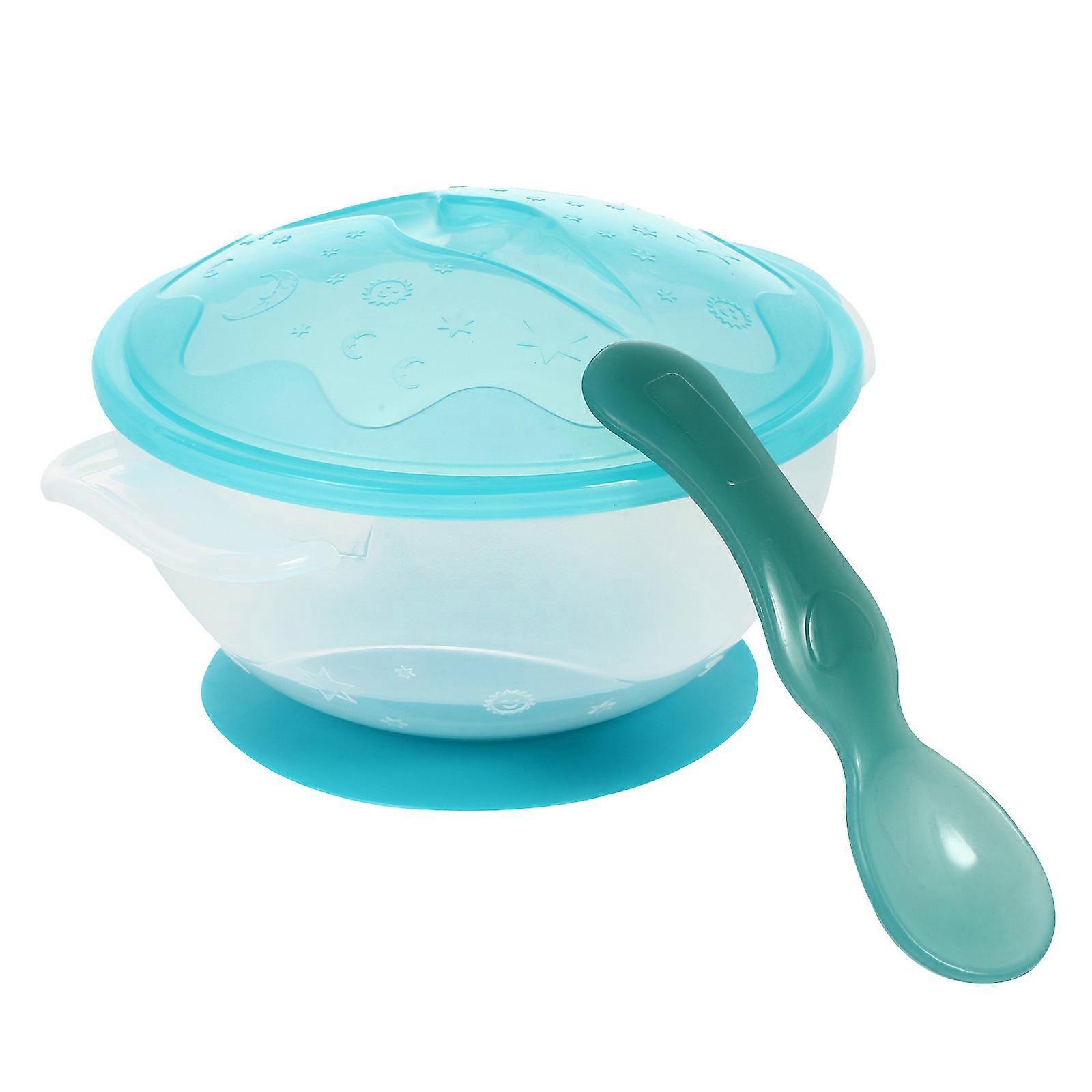 Baby Suction Bowl and Spoon Non Slip Defence Fall Baby Bowl Suit Infant Training Bowl Set Blue