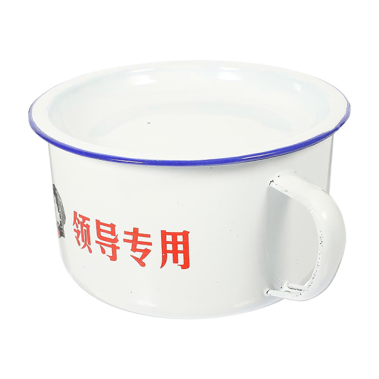 Portable Soup Bowl Household Ramen Bowl Round with Handle White Enamel Anti Rust Microwaveable 1 Set
