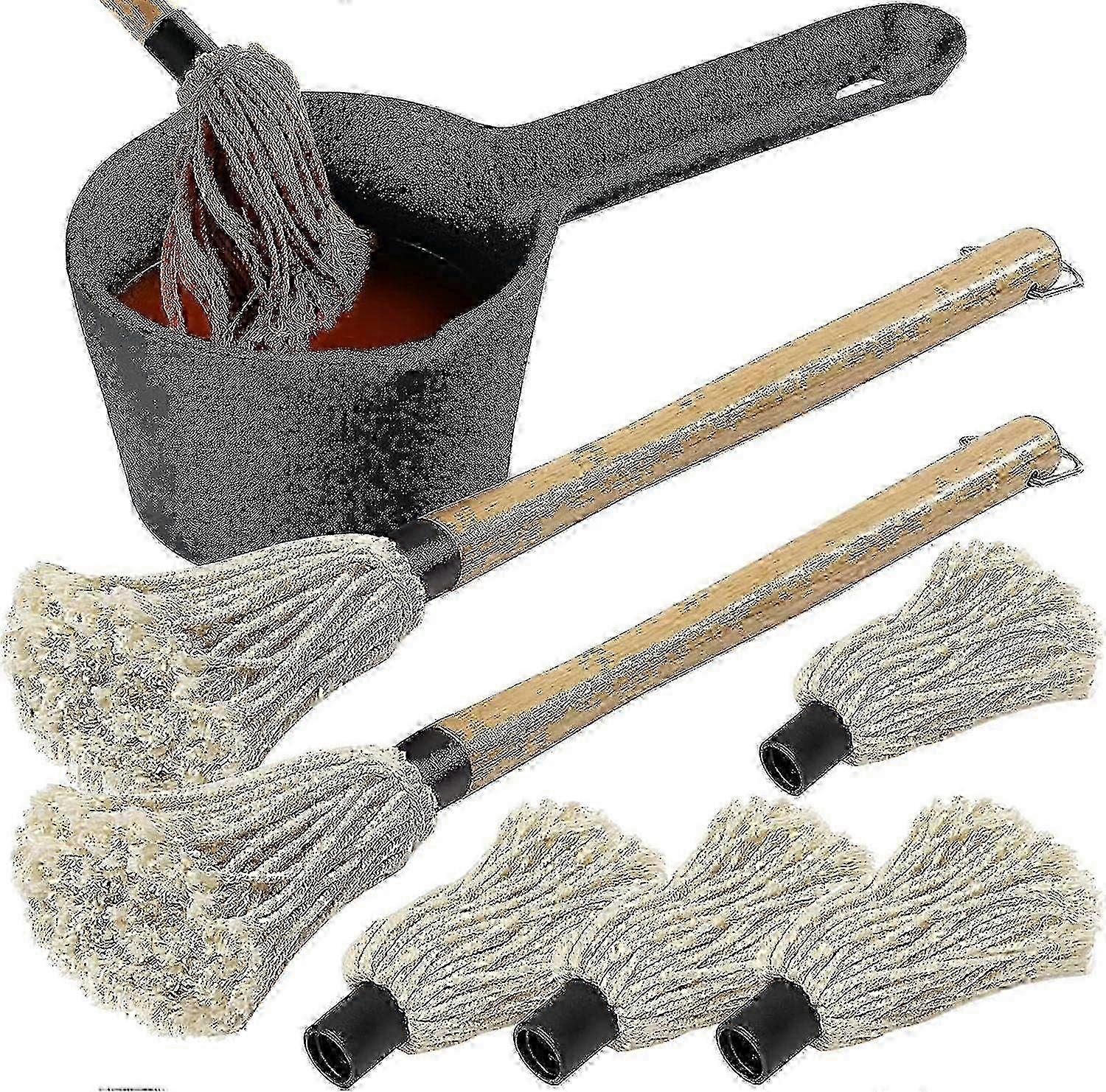 Cast Iron Sauce Pot and BBQ Mop Brush Set for Grilling, 6Pcs Barbecue Accessories including 24 oz Suitable for Various Brands