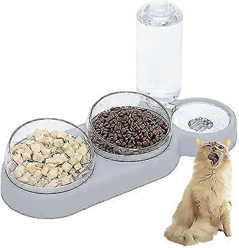 Double Raised Cat Bowl, 15 Tilt Anti-Vomiting Cat Bowl 3-in-1 Automatic Water Storage Pet Bowl, Ava