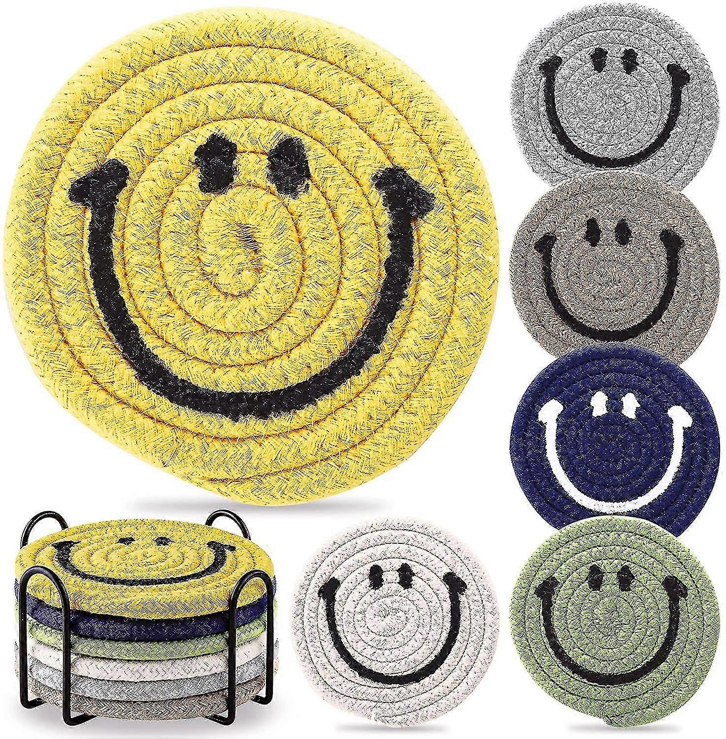 Funny Coasters, 6 Pcs Handmade Braided Drink Coasters For Coffee Wooden Table, Super Absorbent Coasters For Drinks Absorbent With Holder, Cute Housewa