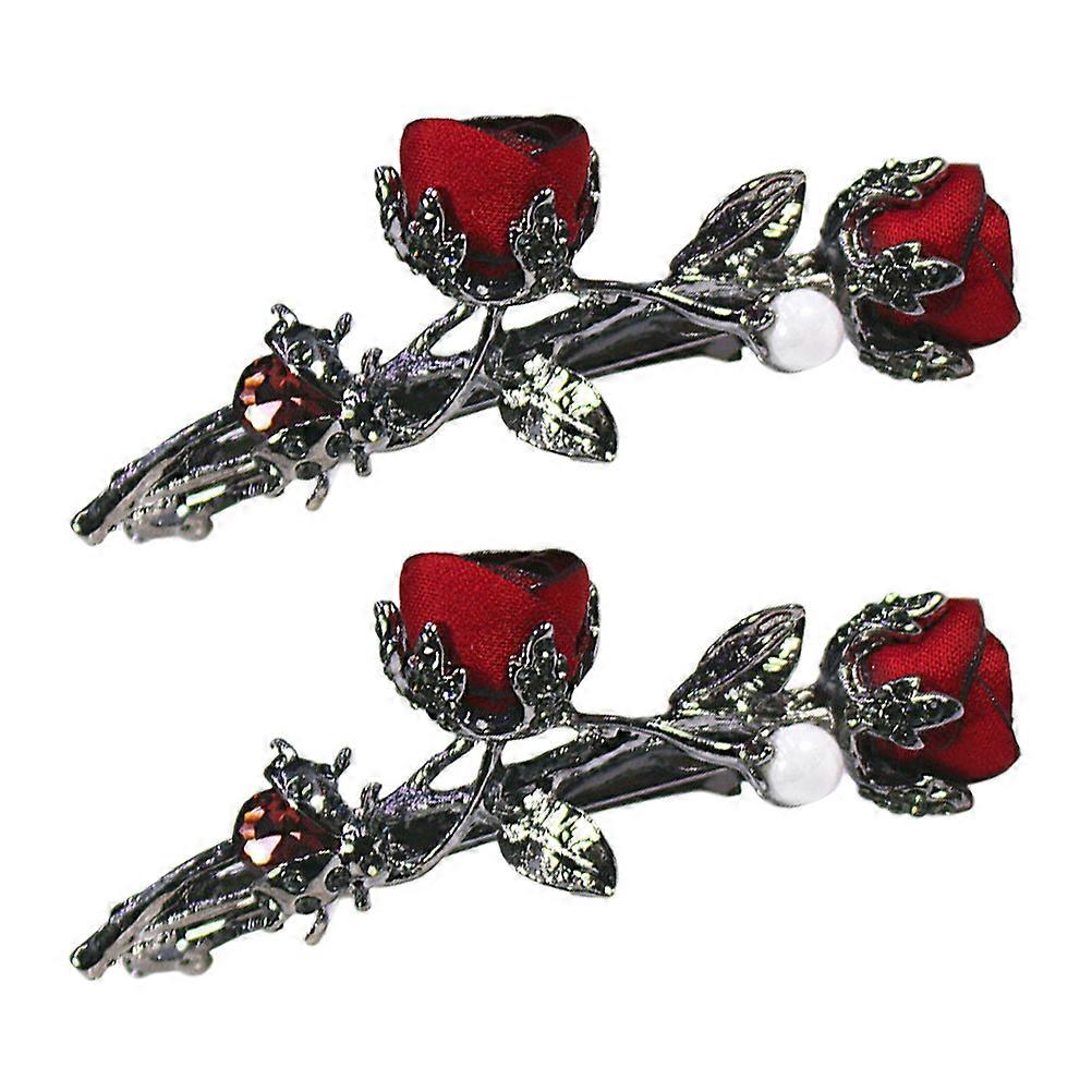 Here's a polished and professional product description for your **Vintage Rhinestone Rose Hair Clips**: **2pcs Vintage Rhinestone Rose Hair Clips