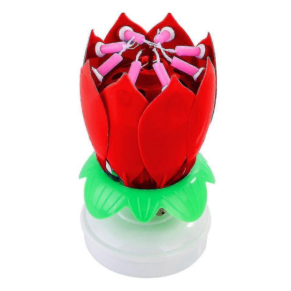 Yaju Happy Birthday Party Candle Cake Light Musical Lotus Flower Rotating Lamp Decor(2pcs,red)