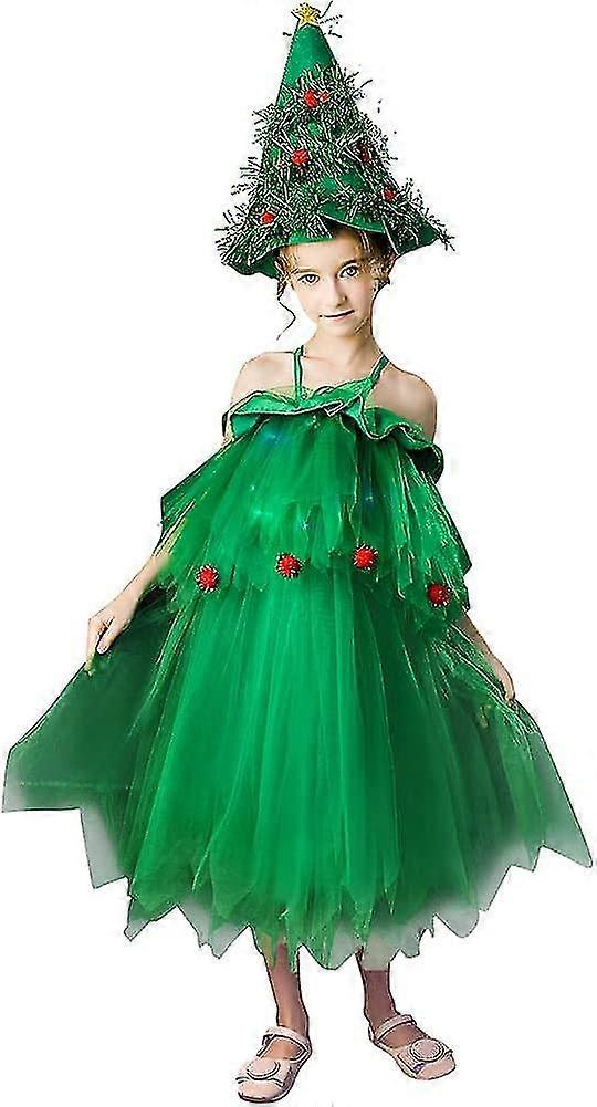 Comes with gift bag Girls Christmas Tree Costume Xmas Party Tutu Dress with Hat Size 1-11T