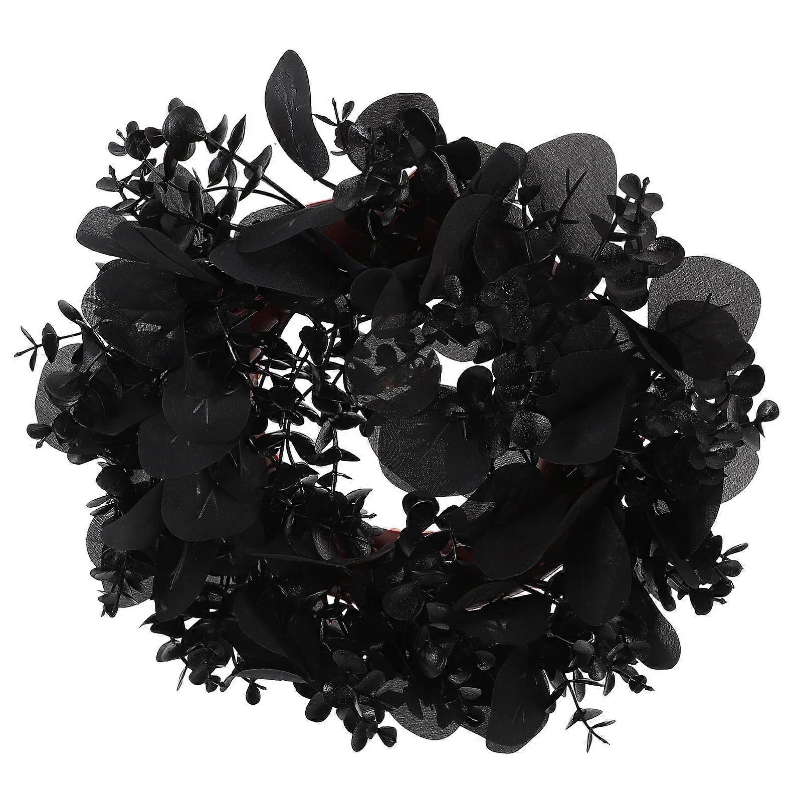 Black Eucalyptus Leaves Wreath Halloween Decoration Front Door Hanging Decoration Item 1Set