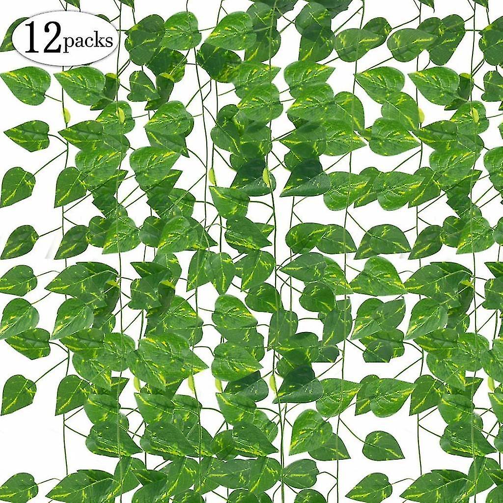 Leaves Garland Artificial Plants, 12 Packs Hanging Plants Fake Vines Silk Ivy Leaves Greenery Garland (lvluo)