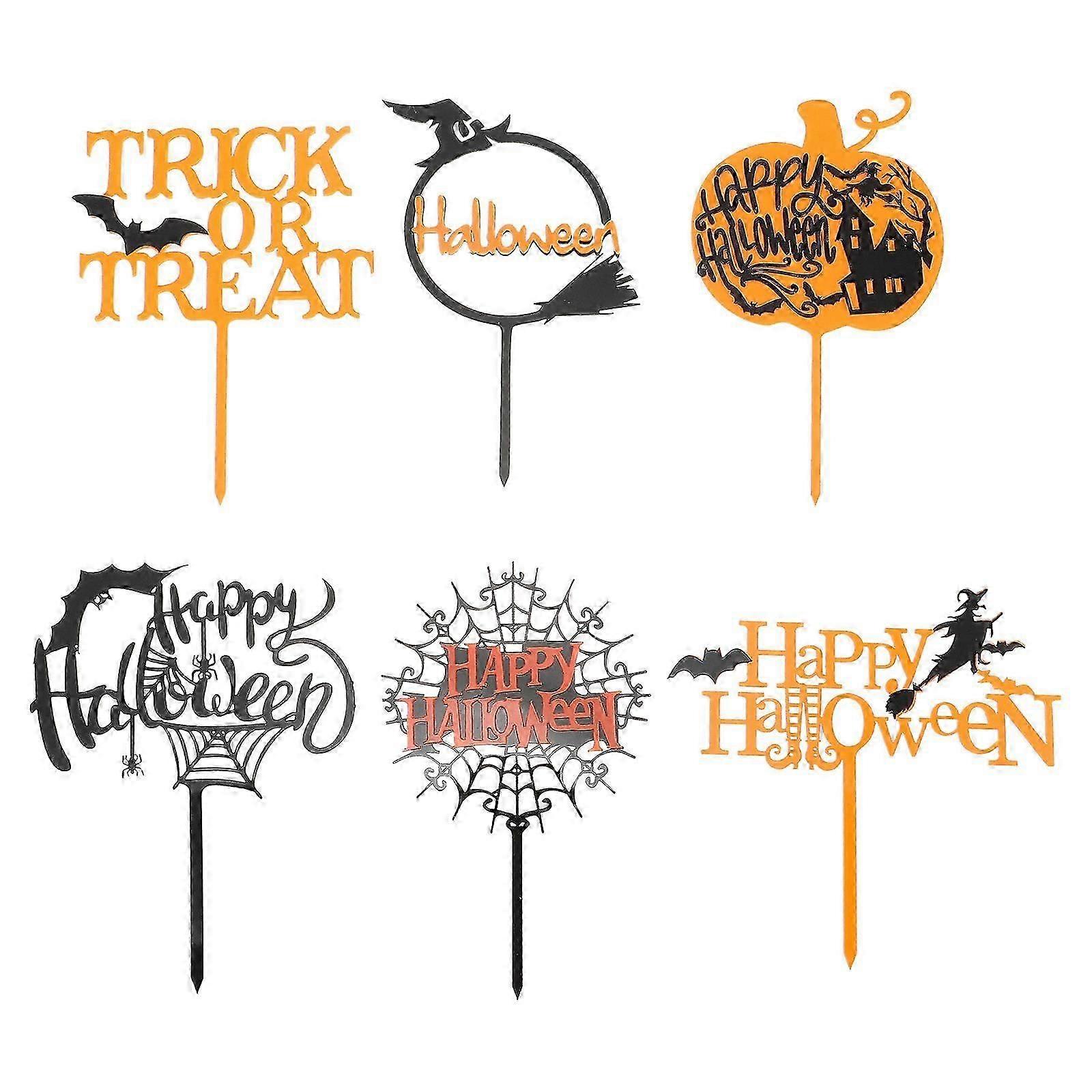 Halloween Picks For Food Bat Pumpkin Cake Toppers Cake Accessories Assorted Color 8x14cm Decoration 6Pcs