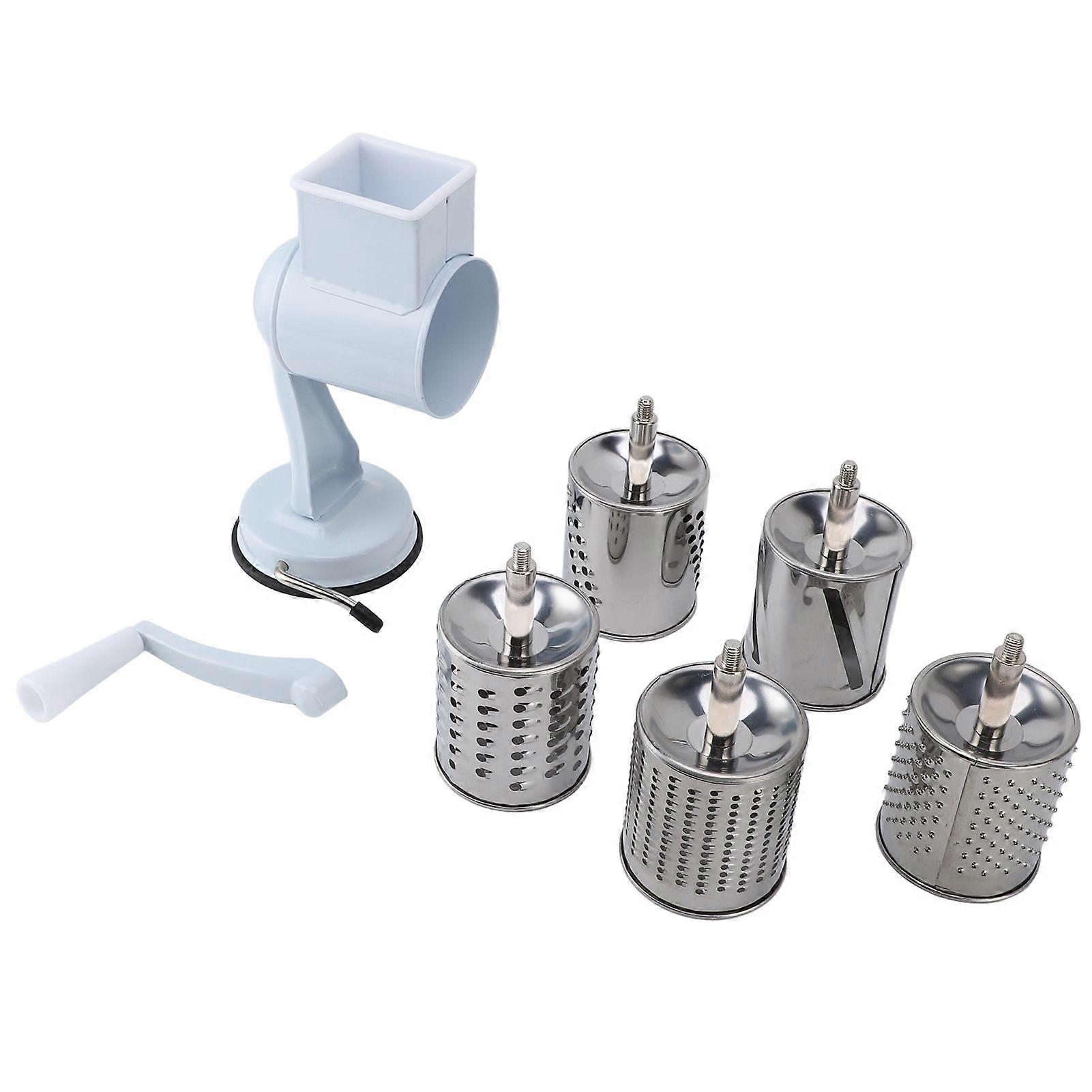 Manual Cheese Grater Shredder Stainless Steel Kitchen Hand Crank Grinder with 5 Interchangeable Blades and Handle for Vegetable Nut Potato White