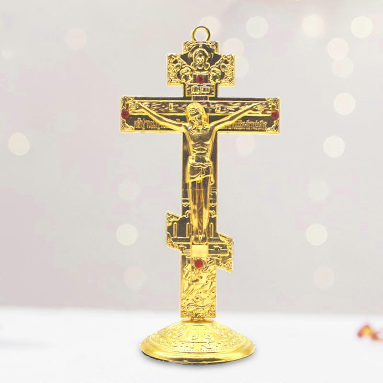 Jesus Cross for Desk Metal with Base Tabletop Ornaments Christian Home Goods Prayer Utensils Table Top Crucifix Cross Catholic