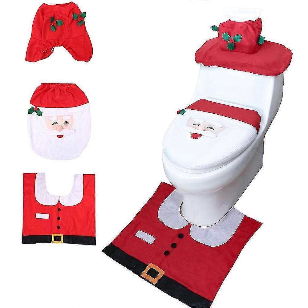 Set Of 3 Christmas Bathroom Set Santa Claus Toilet Seat Cover And Rug Set Tank Cover Christmas Decoration