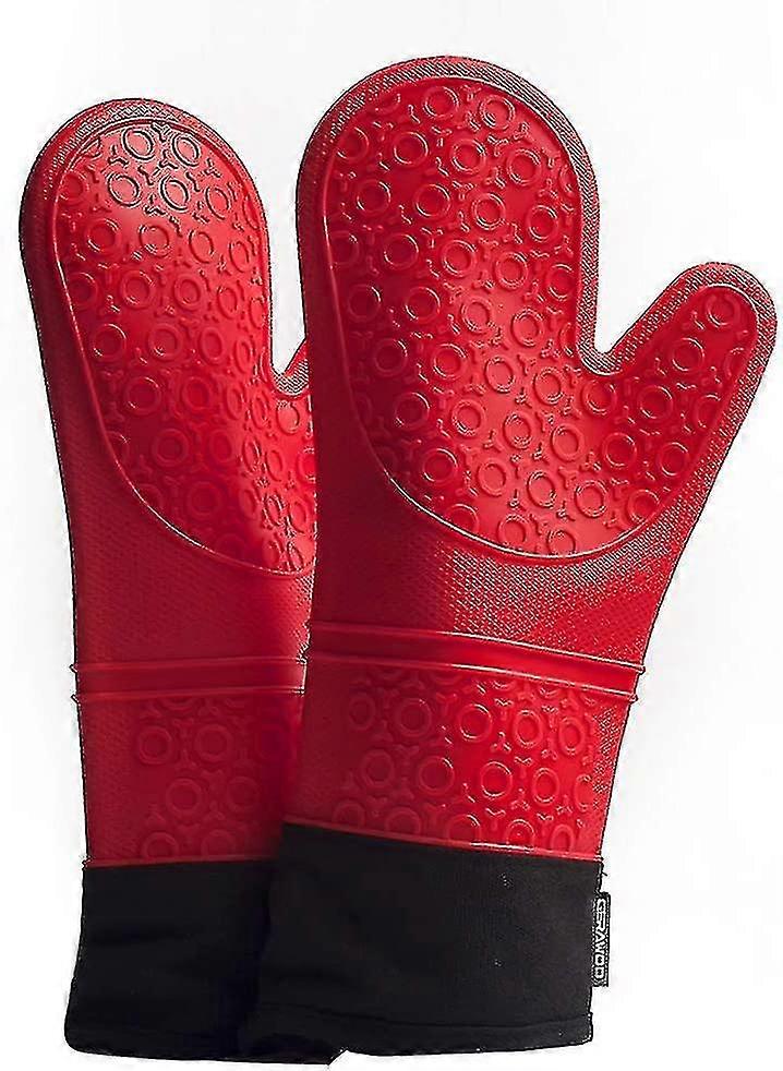 Professional Oven Gloves, Silicone Oven Mitts, 1 Pair Heat Resistant Oven Gloves, Extended Gloves