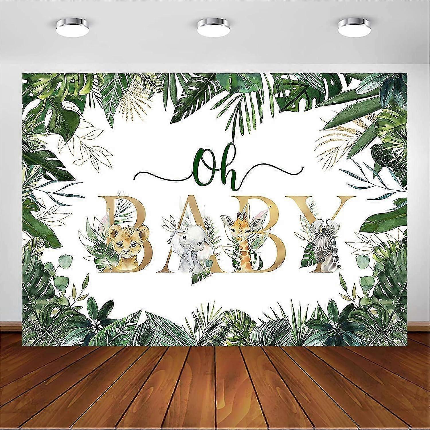 Jungle Animals Oh Baby Backdrop for Baby Shower Decoration Photography Background Safari Gold Green Greenery Leaves Gender Neutral Baby Shower Birthda