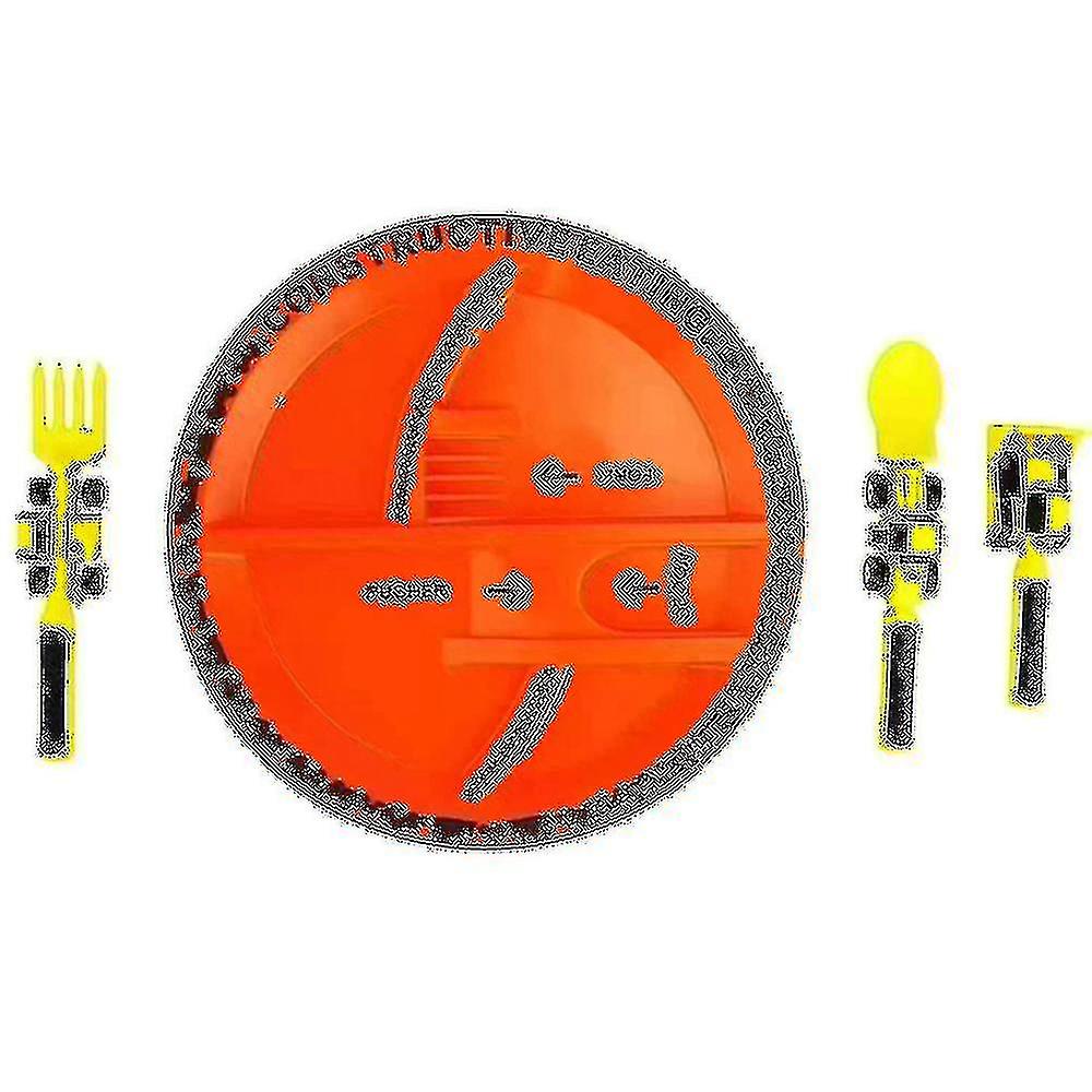 CONSTRUCTION THEME: A good way to encourage healthy eating The plate consists of four divided construction zones, three plate areas bowl. There's a "tractor" fork and a "loader" spoon and a ramp that leads up to the bowl PROMOTES HEALTHY EATING: This way to plan childrens' meals enables parents to visualize food groups and easily plan balanced meals - while also encouraging healthy portion control. And kids who are picky eaters will like the separation of foods ENCOURAGES KIDS' INDEPENDENCE: This dinnerware set encourages kids to take more initiative and independence at mealtime. It stimulates their imagination while creating positive associations with food and kinesthetic development of utensil use. DESIGNED FOR CHILD SAFETY: This set has also been designed for child safety. This includes soft grip handles that are great for small hands, will bend but 't break and create a choking hazard. EASY CARE AND STORAGE: This set is dishwasher safe. It's designed to look realistic but without crevices where leftover food residue can lead to growth. And the sets are rectangular and stackable so they take up less room in the cupboards Material:plastic colour:As shown Package Contents: 1 x spoon 1 x fork 1 x table knife 1 x dinner plate Only the above package content, other products are not included. Note: Light and different displays may cause the color of the item in the picture a little different from the real thing. The measurement allowed error is +/- 1-3cm.