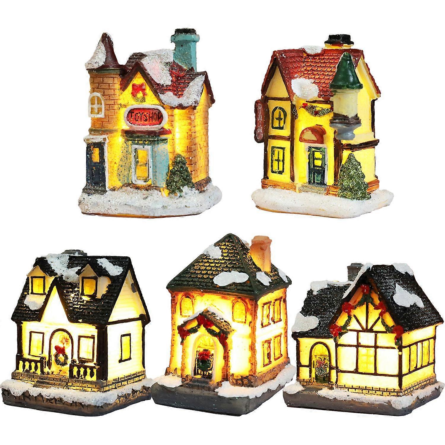 [安德在线](仓库5个款式装一起发货)5pcs圣诞装饰品树脂小房子微景观树脂房子小摆件(A款+C款+D款+H款+J款)